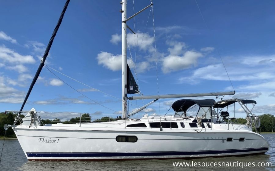 FRESHWATER HUNTER 410 ! Features: Two cabin, two head layout, shoal keel 5' draft, in-mast furling, Profurl roller furling, two sails. 56 Hp Yanmar diesel with only 1207 hours, two air conditioning, electric windlass with chain and rode. Dodger, Bimini with full enclosure, Stainless steel arch for main sheet traveler, 4 Lewmar self tailing winches. Raymarine RL70 GPS/ radar, Raymarine linear drive autopilot, Raymarine ST60 wind, depth and speed instruments. Propane stove, microwave, 12 volts refrigeration, hot water with shower, two electric toilets, full winter cover, steel cradle. Beautiful teak interior, very well maintained, always used in fresh water on Lake Ontario and St-Lawrence river. Canadian documented vessel located Marina Trois-Rivières. For more information, please contact Richard Boulet cell: (418)520-3020. ASKING $139,000 CAD.
