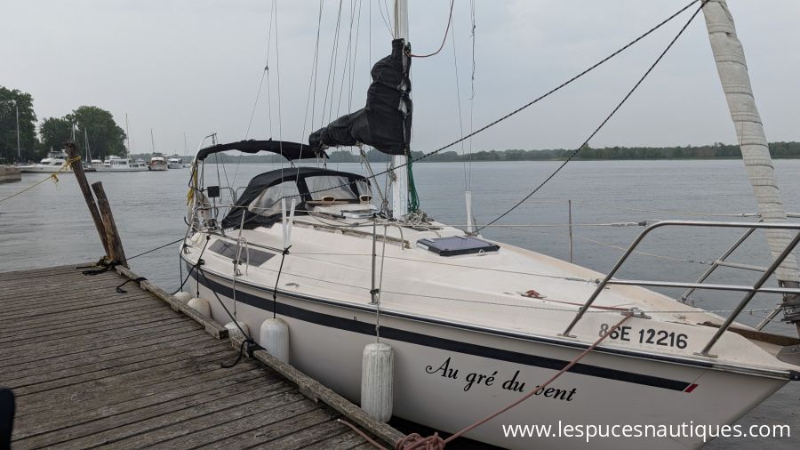 Voiler en bon état volumineux pour sa taille. Aménagement intérieur similaire à un voiler largement plus grand. Table qui se transforme en lit avec siège en U à bâbord, banquette sur tribord. V-berth fermé à l'avant. Cuisinette et toilette. Couche 4 personnes (2 en avant et 2 sur la table)