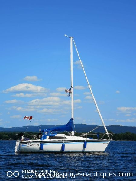 1 chambre fermée, 1 toilette fermée, couchettes dans le carré, moteur hors bord Voilier kelt 7,60 de 1985 , situé lac Champlain USA à 1:30 de Montréal, ber et quai disponible