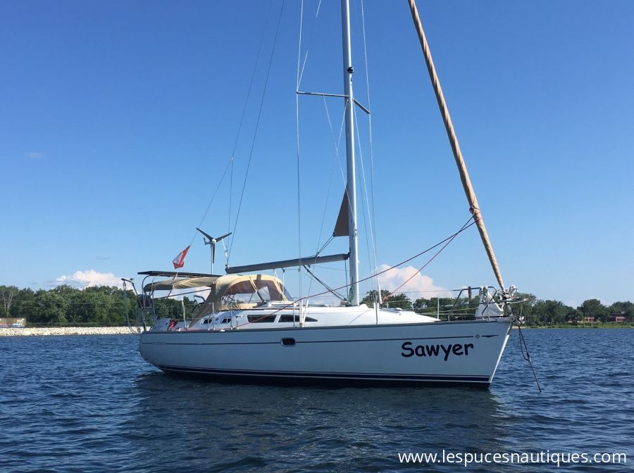 Voilier, Jeanneau Sun Odyssey 37, 2004. Situé au Lac Champlain NY, (Treadwell Bay Marina). Bateau hors-taxes. Fabriqué en France et dessiné par Jacques Fauroux, le Sun Odyssey 37 offre le meilleur des deux mondes, alliant élégance et performance dans un voilier de croisière hauturière confortable. Ce voilier est en état impeccable et est situé en eau douce. Aménagement spacieux avec 2 cabines et une salle d’eau arrière comprenant une douche séparée. Le carré principal dispose d’un coin repas en forme de « U » sur tribord avec une table fixe. À l’arrière de l’espace repas se trouve la cuisine en « L ». Sur bâbord, une banquette et une table à cartes orientée vers l’avant, suivies de la salle d’eau avec douche séparée. Cockpit spacieux. Annexe et moteur hors-bord (15 hp) inclus. Si non affiché dans cette annonce, longue liste d’équipement sur demande. $85,000 USD