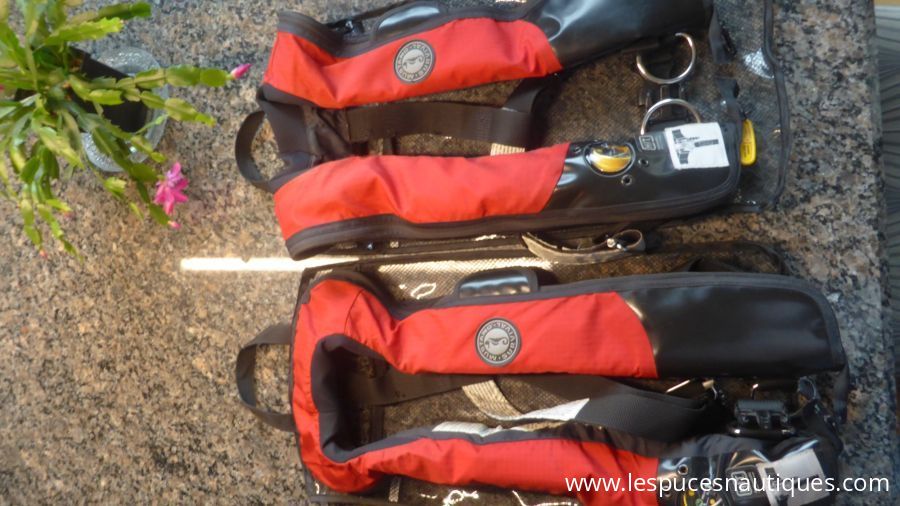 DEUX VESTES SIMILAIRES ,MODÈLE DE LUXE A L'ÉTAT DE NEUF INCLUANT HARNAIS DE SÉCURITÉ ET CARTOUCHE DE CO2 REMPLACÉ EN 2024 VALIDE POUR 5 ANS