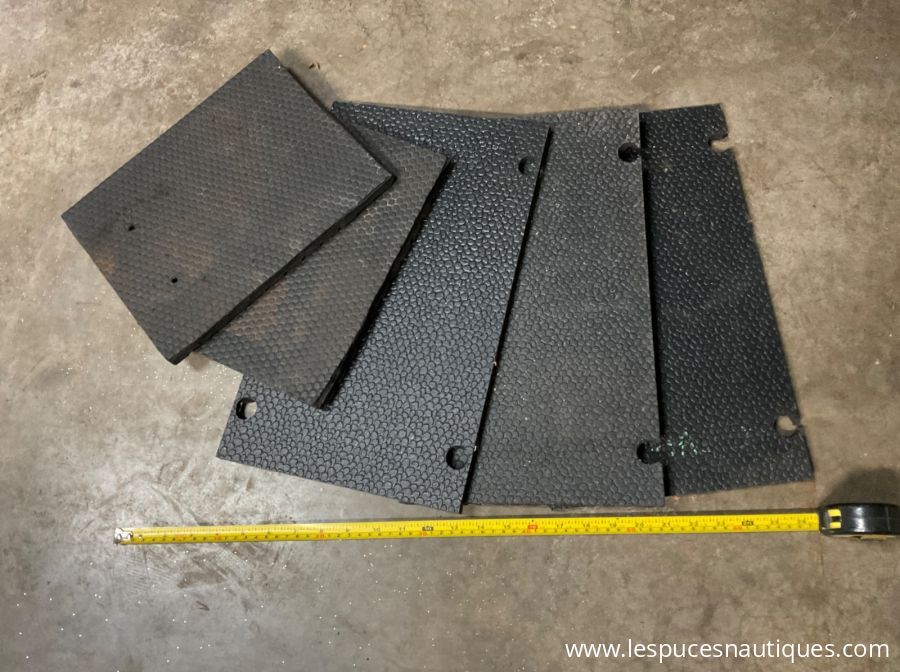 Ensemble de 5 pads de caoutchouc qui s’installent sur les pattes de ber . Ils amortissent et protègent la coque de votre embarcation (voilier ou bateau moteur) lors de son entreposage. Les dimensions sont d’environ 12 pouces X 12 pouces et 5 / 8 pouces d’épaisseur. En excellente condition. Aubaine à $ 45.00 .
