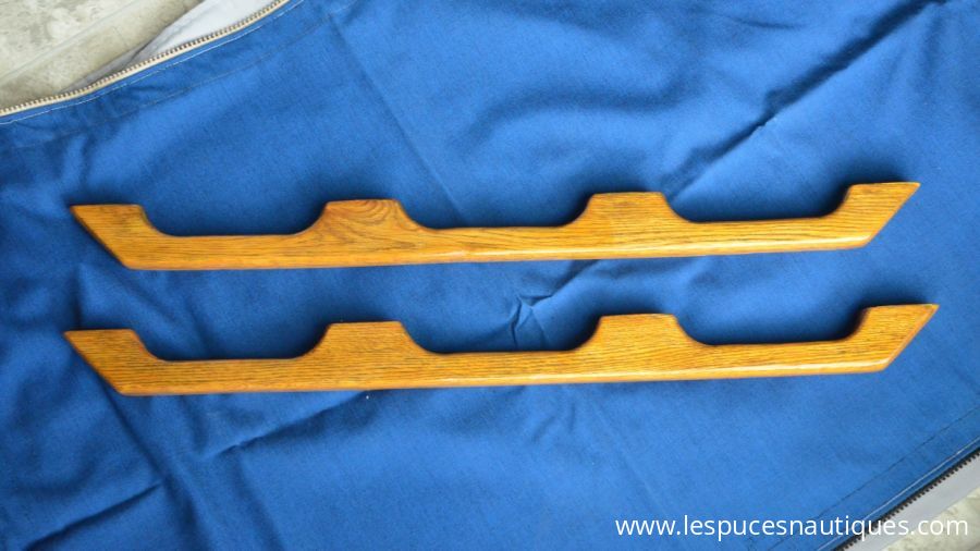 Une paire de main courante en bois à 3 boucles, 33po de long aprox. Rénové, voir photo de détail. Demande $20 pour les deux.