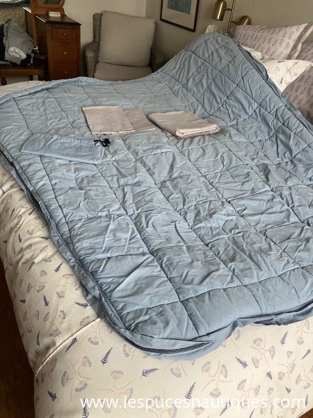 Sac de couchage avec draps et taies d'oreiller hiver-été pour V-Berth bleu en très bon état. cause: nous n'avons plus de bâteau.