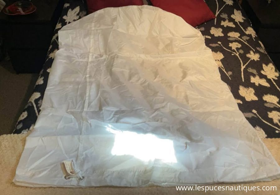Grand sac de transport pour voilure, de couleur blanc, en nylon, flambant neuf. Parfait pour de grande voilure. Sa dimension est de 48 pouces de hauteur par 37 pouces de largeur (diamètre).