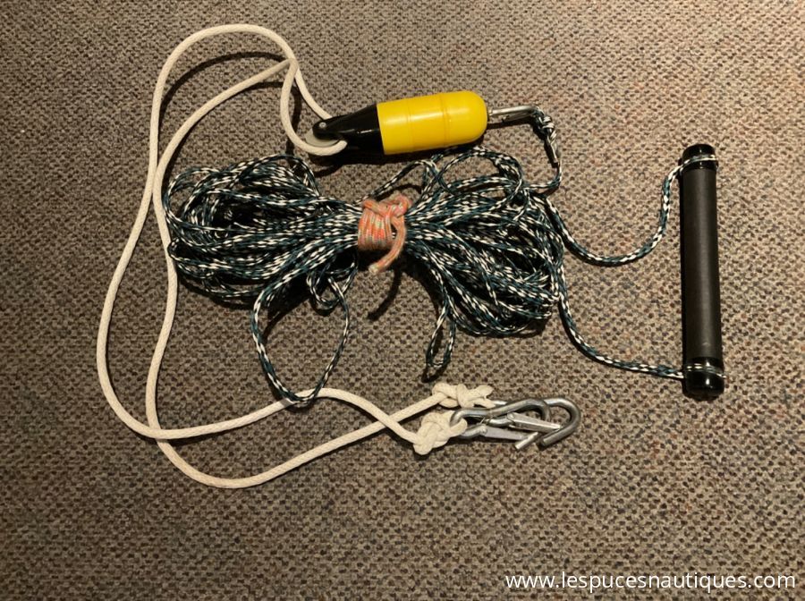 Corde & poignée pour sports nautiques robuste et universel tel que skis, wakeboard ou autres. La poignée est en caoutchouc pour plus de confort. Elle est également muni d'un anneau en ''D'' pour faciliter les manoeuvres derrière le bateau.